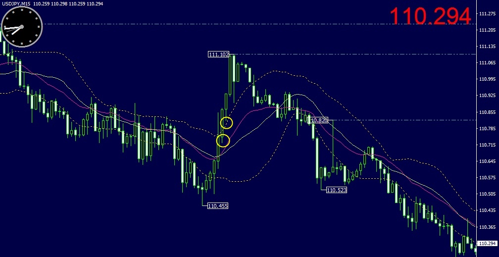 ドル円の15分足チャートで見て見る